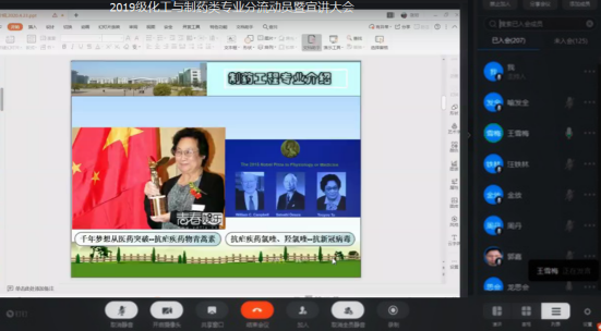 党委书记王雪梅,副院长(主持工作)汪铁林,院党委副书记周丹,副院长郭嘉、龙思会、金放,院长助理闫志国,制药工程专业责任教授张珩,能源化学工程专业负责人吴华东,药物制剂专业负责人黎莉,各系(中心)主任、副主任,2019级辅导员、班主任、全体化工与制药大类427名同学参加了此次云端会议,会议由周丹主持。