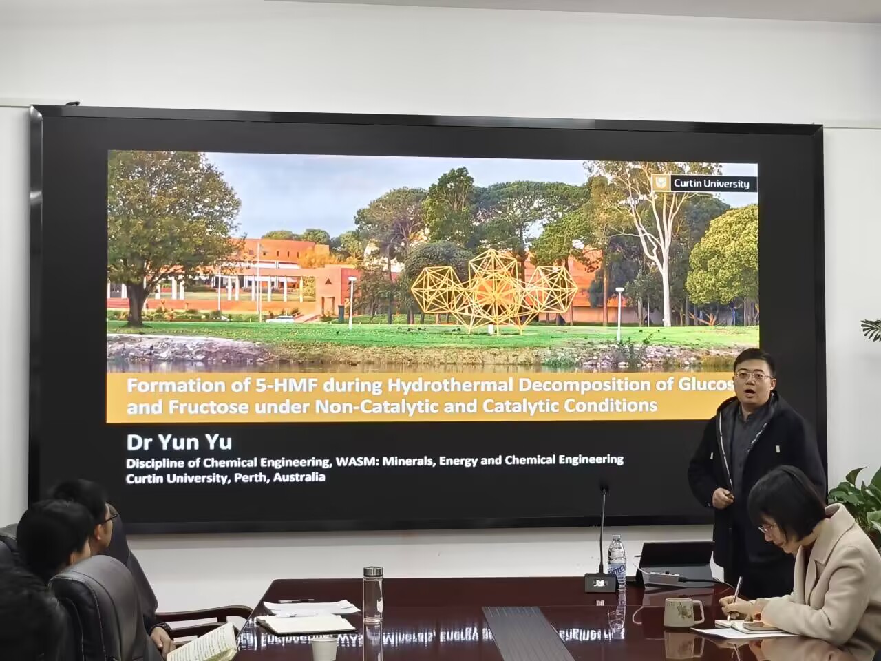 俞云教授以“非催化和催化条件下葡萄糖和果糖的水热分解生成5-羟甲基糠醛(5-HMF)的研究”为题,分享了团队在研究葡萄糖和果糖热分解工作中的方法和经验,详细介绍了酸性催化剂促进HMF生成的机理,对未来的研究工作提出了展望,将持续研究5-HMF在各种酸性条件下的分解,在半连续和连续反应器中进行工艺流程优化,使工艺适合工业化生产,同时注重对糖生产5-HMF的技术经济研究和生命周期评估。