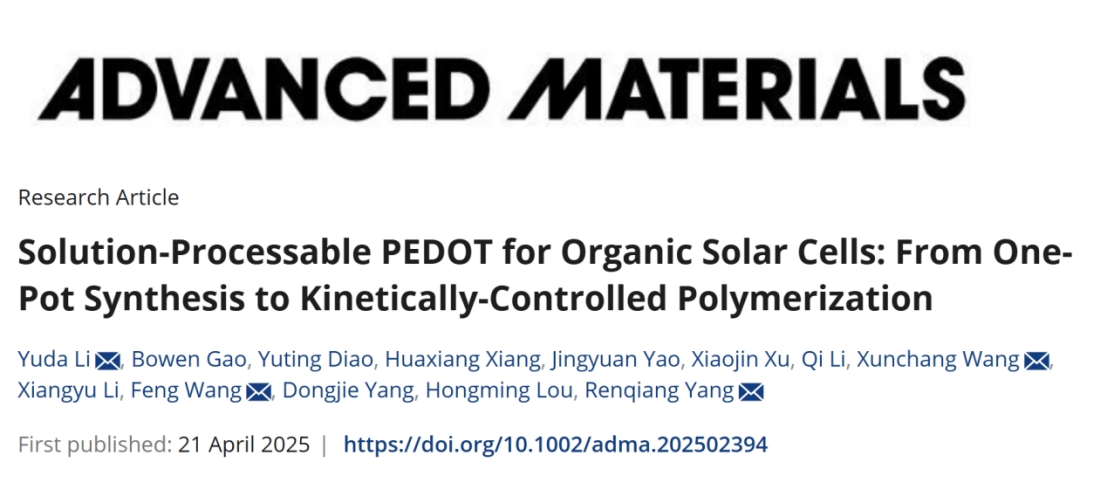 Top期刊)上发表了题为“Solution-Processable PEDOT for Organic Solar Cells: From One-Pot Synthesis to Kinetically-Controlled Polymerization”的研究论文。香蕉视频