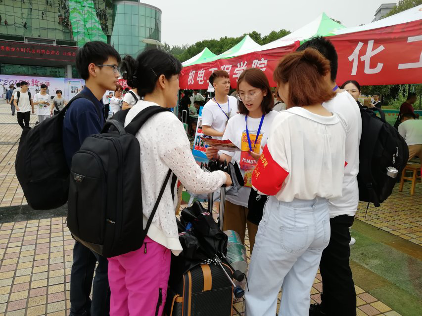 9月5日-6日,香蕉视频专设党员志愿服务岗在大礼堂门口进行摆点迎新。随着新生及其家长的到来,志愿者们都精神饱满,事无巨细的为新生提供各项服务。