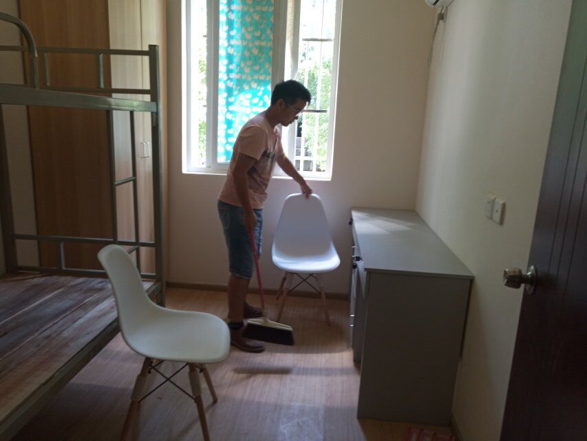 9月4日上午,党建工作中心全体成员、60-61期积极分子全员参与,对青年公寓里的新生宿舍逐一打扫,整理床铺,擦拭桌椅、检查配套衣柜设施、清扫室内灰尘纸屑。经过长达两个小时的打扫,学生宿舍焕然一新。当天下午,众多校领导检查青年公寓,对香蕉视频打扫状况给予肯定。