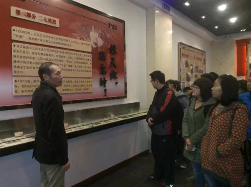 师生一行参观了施洋烈士纪念馆。通过讲解员的解说,大家了解到施洋勤奋好学的品质和为国为民的情怀,烈士最终受到反动军阀的迫害,献出了年仅34岁的宝贵生命。董必武同志的题词“二七工仇血史留,吴萧贻臭万千秋,律师应仗人间义,身殉名存烈土俦”是施洋烈士英勇事迹真实的写照。师生们还学习了中国共产党早期工人运动史,认识到“二七”大罢工等工人运动的历史意义。