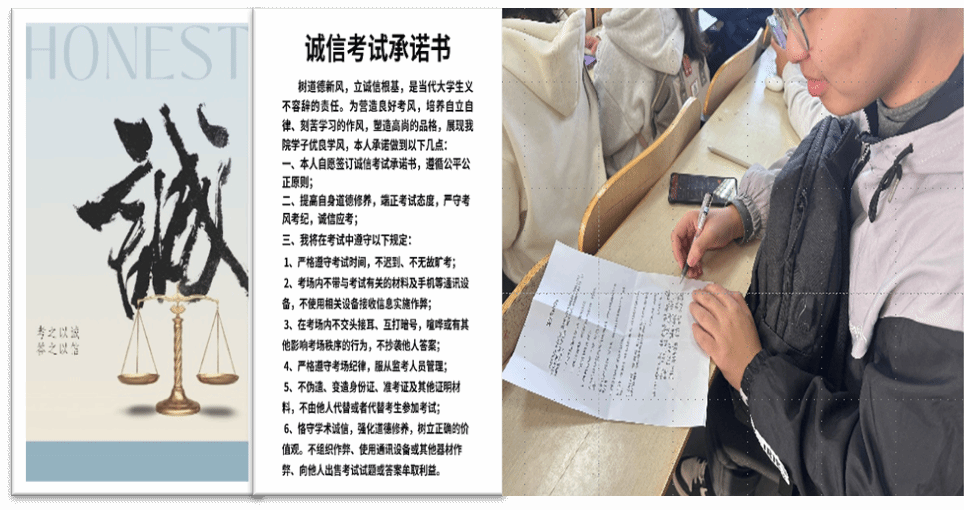 在教学楼开展诚信考试签名活动,号召全体学生严于律己,诚信应考,自觉维护考场环境。参与活动的学生纷纷表示,将坚守诚信考试理念,营造公平公正的考试环境。