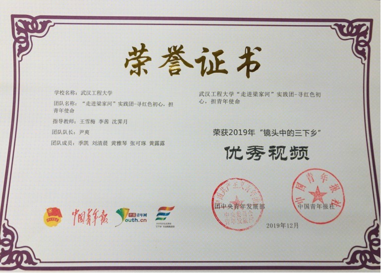 “走进梁家河”实践团,同团队成员一起开展了为期14天“寻红色初心,担青年使命”主题暑期社会实践活动。实践团聚焦“初心、使命”关键词,以延安市和西安市为调研对象,对新时代背景下红色精神的传承以及红色革命带动绿色生态革命现状进行学习探讨和调查研究。黄雅琴跟随团队一起,先后参观学习了中国人民抗日军政大学旧址、南泥湾、七大旧址、梁家河村史馆等地,协助团队一起完成了近万字的实践调研报告,在中国青年网上发表个人通讯稿一篇,团队视频作品获得团中央2019年“镜头中的三下乡”优秀视频奖。