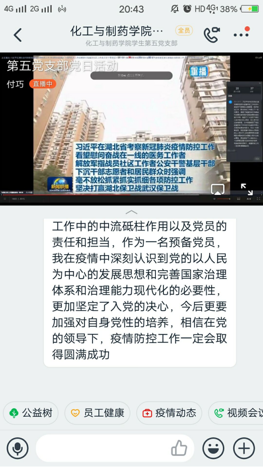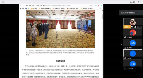 党委对疫情防控的部署要求,同时也提醒支部党员做好学业规划、扎实开展线上学习,疫情期间思想不掉队、学业不掉线。