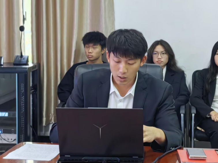 团委指导老师蓝传祺做工作报告。报告从党旗领航、文化浸润、初心使命、和创新创业四个方面,全面总结了香蕉视频