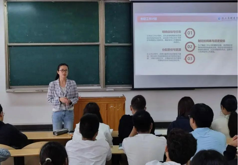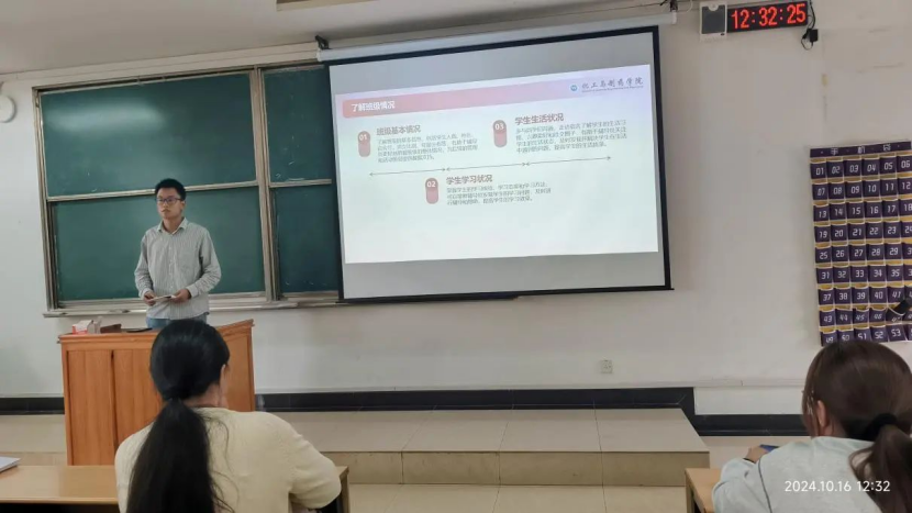 辅导员翟森稳、张锦分别从“班委职责”“沟通技巧”“班级建设”“时间管理”“应对压力”“工作方式”等方面展开培训。
