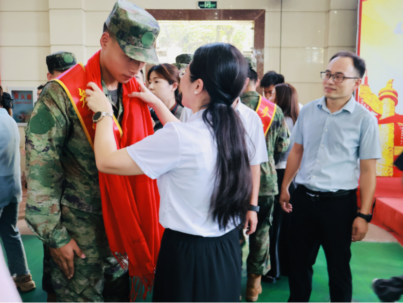 校党委副书记李志旭代表学校向全体光荣入伍学子致以热烈祝贺并提出殷切期盼。他指出军旅生涯是宝贵的成长机遇,希望同学们珍惜历练时光,主动适应军营生活,完成从 “工大学子” 到 “合格军人” 的角色蜕变。在艰苦磨砺中锤炼意志,深化政治理论学习、精进军事技能、钻研科技知识,全方位提升综合素养以筑牢履职根基。他强调,同学们要以军人标准严格要求自己,严守纪律、服从指挥,团结战友、刻苦训练,养成优良作风与过硬本领,牢记 “听党话、跟党走” 的初心,将工大精神融入军营实践,在国防建设中展现责任担当,为祖国国防事业贡献青春力量。最后,他代表学校殷切期盼入伍学子在军营奋勇拼搏、建功立业,为母校争光。