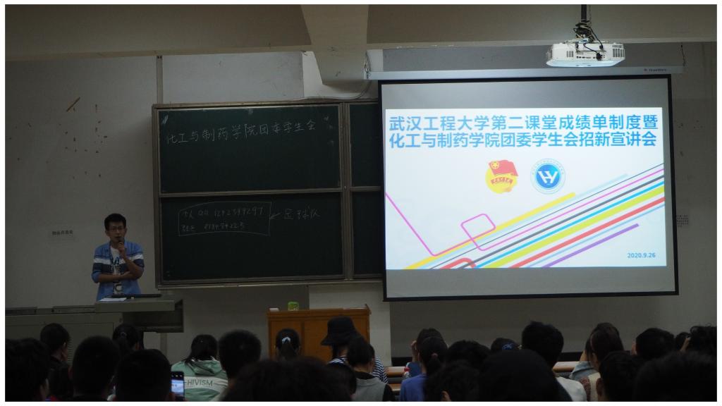 分管团委工作兼2020级新生辅导员汪喆伦、团委学生会各部门负责人以及全体2020级新生参加本次宣讲会,会议由学生会主席团成员代表主持。