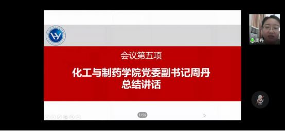 全体学生干部提出三点要求:一是要慎思明辨。行成于思毁于随,学生干部要在国家大事上求真,坚持以习近平新时代中国特色社会主义思想为指导,坚定理想信念。二是要克己自律。学生干部要增强自身的廉洁自律意识、责任担当意识,以身作则、率先垂范。同时,希望同学们抓住线上学习的大好时机,提高自律意识,努力汲取知识,不断的提升自我。三是要坚持不懈。虽然国内疫情防控形势向好,但是海外其他国家疫情防控情况依然严峻,严格服从、积极配合国家、学校的各种防控措施,是我们每个人应尽的责任和义务。越是到最后关头、越是在关键时期,越是要守的住原则、把得住底线。不信谣,不传谣,不私自提前返校,为打赢疫情防控狙击战贡献自己的力量,展现化药学生干部的责任和担当。