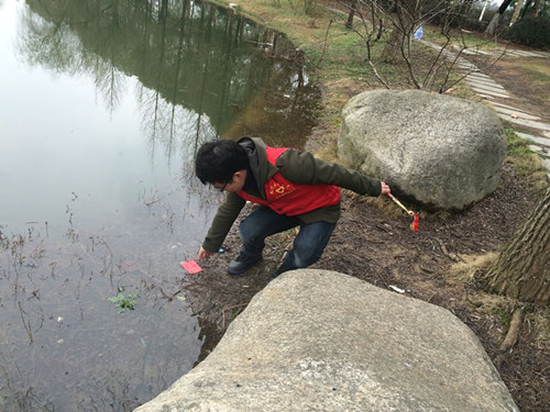 许志伟志愿服务队29名志愿者在流芳校区开展了美丽静思湖活动。