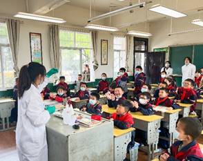 研究生志愿者结合化工、制药专业特色,为了给小朋友们带来一场别开生面的趣味化学实验课,大家提前集体备课,自主设计了5个趣味小实验,课堂上耐心细致地为小朋友们讲解了有关酸碱指示、沉淀现象的知识及实验仪器、试剂用量的基本操作方法,小朋友们瞪大了好奇的眼睛,“啤酒泡沫”“水中烟花”“点水成冰”等妙趣横生的小实验引得教室阵阵欢呼,为小朋友们打开了奇妙的新世界。