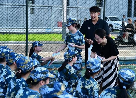 党委副书记周丹、本科生新生辅导员蓝传祺一行前往训练场地,看望慰问参训学生。