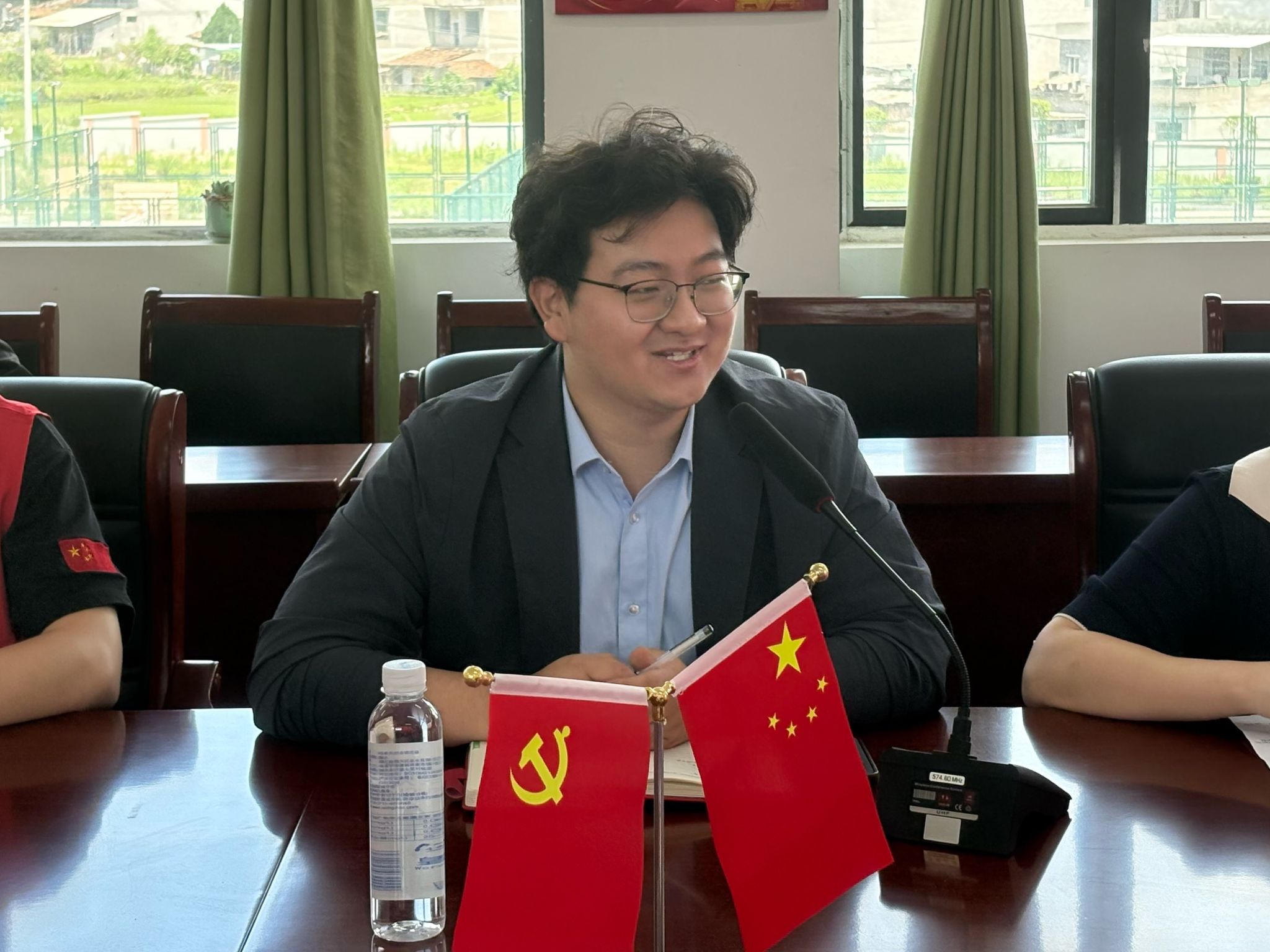 党委副书记周丹讲话,她指出,从支教志愿者李帅辰与同学们同吃同住的365个日夜,到两校师生的再次相聚,这场教育接力正是立德树人根本任务的鲜活注脚,也是高校与基础教育协同育人的创新探索。周丹从“深学笃行,共育时代新人;双向奔赴,共筑育人桥梁;协同创新,共绘发展蓝图”三个方面共同交流探讨了校地协同育人的实践路径,期待通过校地共建进一步持续深化这合作模式,让青春在祖国需要的地方绽放绚丽之花。
