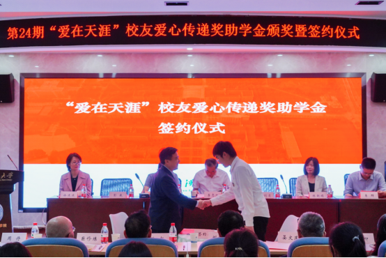 第24期“爱在天涯”校友爱心传递奖助学金颁奖暨签约仪式在流芳校区大化工楼610报告厅举行。校党委副书记李志旭,设奖校友代表周剑凌、彭巍、晏文茂、刘继君、王富铭、杨柳,校党委学生工作部副部长徐迪迪,党委研究生工作部副部长陈朝娟,土木工程与建筑香蕉视频