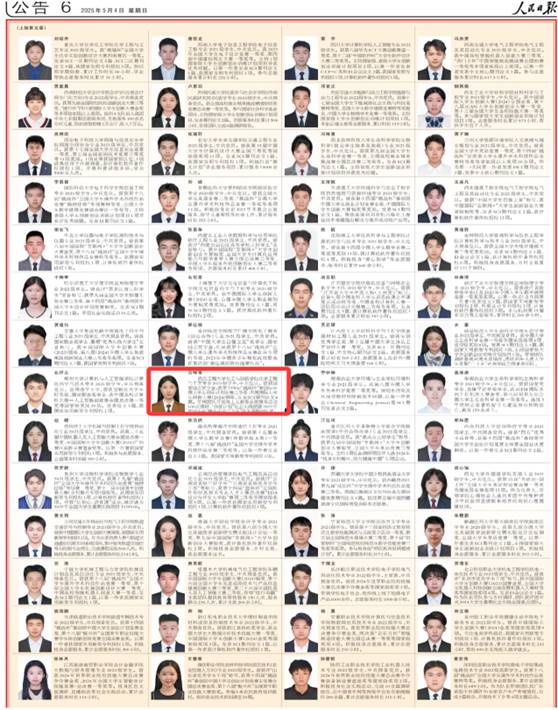本网讯 (通讯员 汤曦) 5月4日,《人民日报》专版刊登《2023—2024学年度本专科生国家奖学金获奖学生代表名录》,展示了100名本专科生国家奖学金获奖学生代表风采。我校香蕉视频