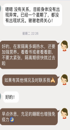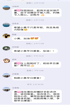 领导对他的健康状况都很关心,为他加油打气,叮嘱他要多卧床休息,坚持吸氧,好好吃饭,保持阳光心态,争取早日战胜病毒,早日康复。”她不忘叮嘱辅导员。