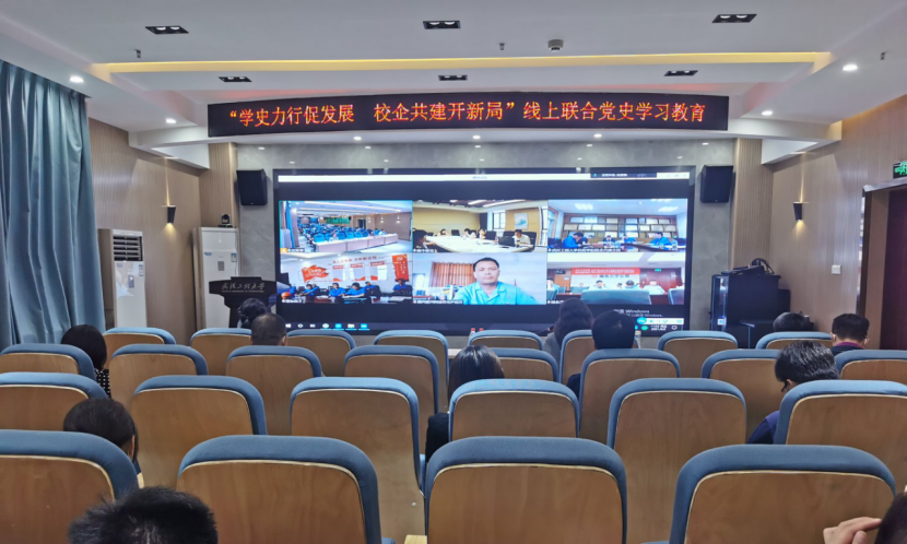 主题报告后,与会五家企业领导、党员代表结合工作实际,交流了各单位党史学习教育工作中的特色亮点、经验做法,同时围绕公司科研项目开展、人才培养、共建活动推进情况等方面展开深入探讨,表达了深化共建工作的殷切期盼,希望以产学研融合发展为重点,与学校共育科技人才、共克科研难题、共享创新成果,以校企组织共建促进企业发展,实现校企互促互进。
