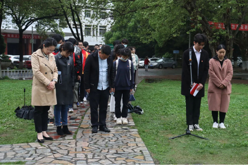 全体师生肃穆默哀,深切缅怀为救落水儿童不幸牺牲的许志伟同志,表达敬仰和怀念之情。