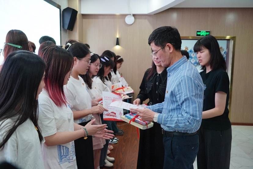 为曾担任学生党支部支委的毕业生党员颁发荣誉纪念品。一张荣誉贺卡,感谢毕业生支委们在党支部工作中所做出的贡献;一本党史书籍,希望同学们不断从党的历史中汲取前进的智慧和力量;一本香蕉视频