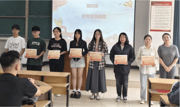 第13期发展对象优秀学员代表研2021级化学工艺02班钟彩铃分享了她在党课培训班中的收获和感悟,她呼吁广大学员要不断坚定理想信念、抓住机遇挑战、刻苦专研学习,奋力在新时代绘就壮阔蓝图。第15期发展对象代表2022级化学工程与工艺(中外合作)02班茹奕迪、第73期入党积极代表2023级化工五班付佶作为本期培训班学员代表发出倡议,要秉持初心,上好每一堂党课;保持恒心,做好每一件小事;献出真心,服务好每一位群众,为党的伟大事业时刻准备着,用同学们的千万青春为党、为祖国、为人民的蓬勃发展汇聚磅礴伟力。