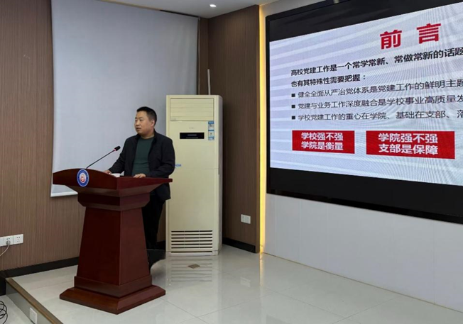 实际,结合党支部书记工作要求,讲解如何促进党建与中心工作相结合。他强调,支部书记要以更强的责任担当,立足岗位、破解难题,共谋学校发展。