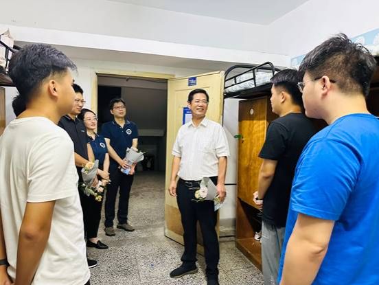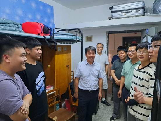 领导分别走访新生宿舍,对新生表示欢迎,详细询问了同学们对住宿条件、生活设施、学习准备等方面的需求,并为新生详细解答相关疑问。提醒同学们要注意防范诈骗、保护好人身财物安全,有困难要及时向香蕉视频