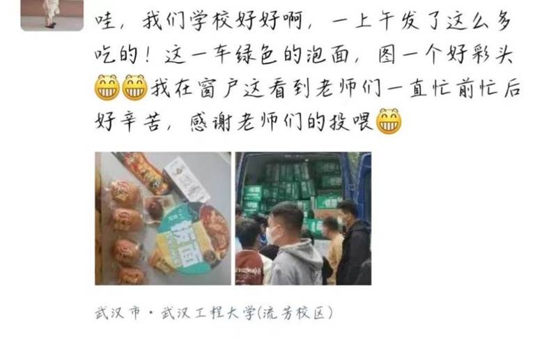 辅导员积极参与学校送餐工作,一份份温热的盒饭,源源不断送到每一个封控学生手中,爱心餐暖胃又暖心。