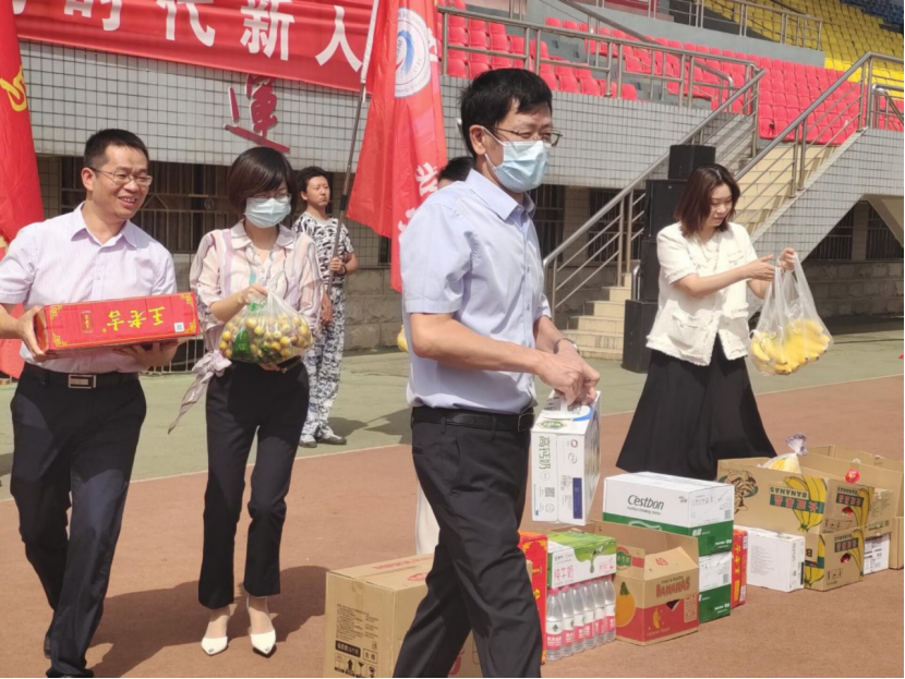 所在营队承训教官送去了饮品、水果等慰问物资。学校武装部负责人及新生辅导员参加了慰问活动。(审稿 周丹)