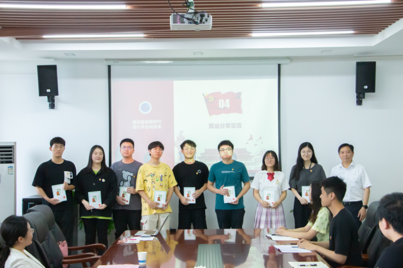 班会上,同学们敞开心扉、踊跃发言,分享自己四年来大学生活的点滴体会。考入中山大学、有过两年入伍经历的赵鹏用跨考和入伍的故事为大家讲述了自己六年来的蜕变;从一开始就坚定报考本校并最终以初试370的高分顺利上岸的王子翔则谈起了自己报考本校的缘由和信心,经历了考研失利到求职成功的袁丽婷用失落、迷茫和坚定三个关键词向大家分享了自己一路走来的收获,同学们纷纷回忆起自己在军训、学习、生活等方面的进步与成长,表达了爱院、爱校、爱专业、爱祖国、爱党的强烈热情。