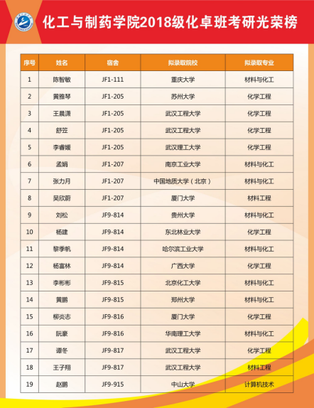 8个全员上岸宿舍之一。最终,化卓班考研的21名同学中19人一战成“硕”。