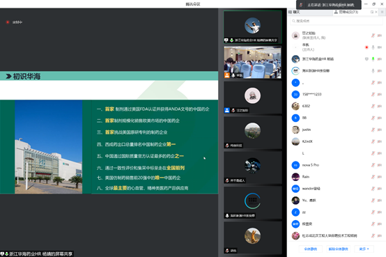 本次线上宣讲会利用腾讯会议平台,共邀请了化工生产、药物合成、工程设计等不同类型的九家企业开展宣讲,岗位需求达300余人,涵盖了化学工程、制药工程、药物制剂、材料化学等多个专业,切实满足了香蕉视频