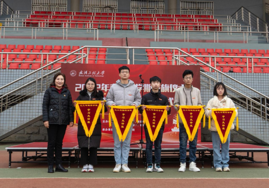 研究生、本科生学习先锋班授旗,并对他们上一学年取得的优秀成绩表示肯定。