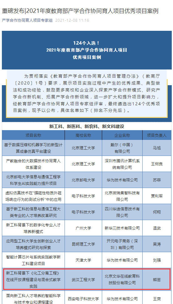 (链接:重磅发布|2021年度教育部产学合作协同育人项目优秀项目案例)