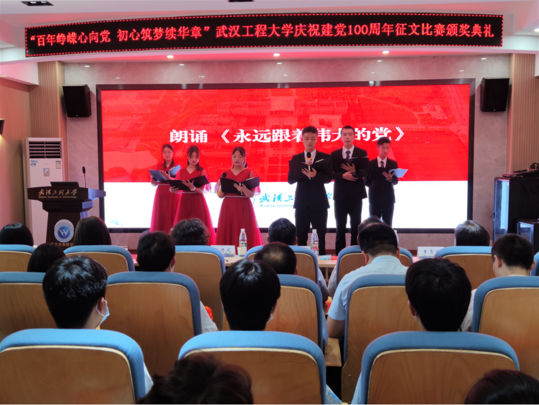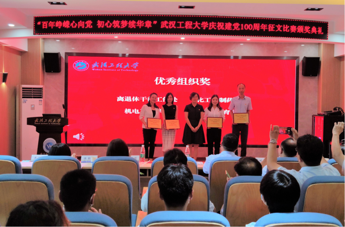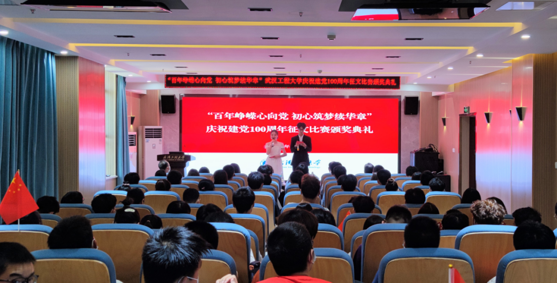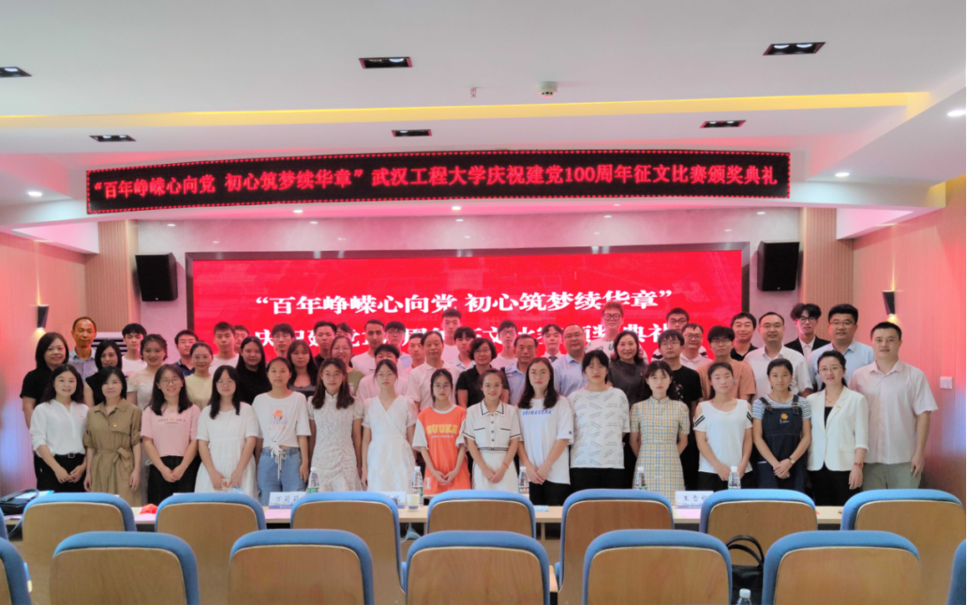 庆祝建党100周年主题征文比赛颁奖典礼在大化工楼610报告厅隆重举行。大赛优秀组织单位代表、获奖作者以及师生代表共百余人参加了颁奖典礼。