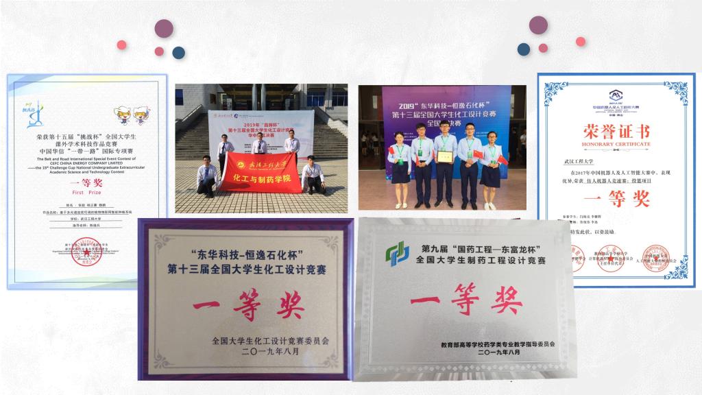 学生在“互联网+化学反应工程”课模设计大赛、大学生创业大赛创业计划竞赛、全国大学生药苑论坛等各类竞赛中共获奖30余项。