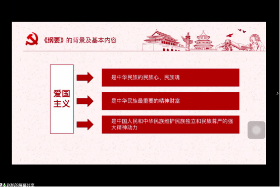 赵旭同学的带领下,共同学习了《新时代爱国主义教育实施纲要》的主要内容。