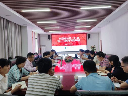 本科培养方案修订、专业建设、师资队伍以及全国大学生化工实验大赛中南赛区选拔赛准备工作开展主题教育调研。学校主题教育调研联络组第五组副组长、教务处处长王海晖,党委宣传部副部长陈欣,教务处副处长于传浩,党政办公室主任科员刘静陪同调研。