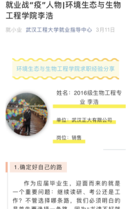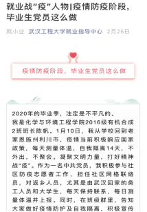 积极行动,高度重视就业工作,调动全院教职工给毕业生把脉问诊,针对部分疫情高发地区、考研不理想及就业困难的毕业生进行求职心理疏导,引导其正确面对此次疫情,认真准备网络招聘。同时广泛宣传,充分挖掘就业典型,利用微信公众号发布就业战“疫”人物推文,营造线上就业的良好氛围。为了让毕业生充分了解用人单位及岗位情况,有针对性地求职,学校提前一个月进行双选会宣传工作,各香蕉视频