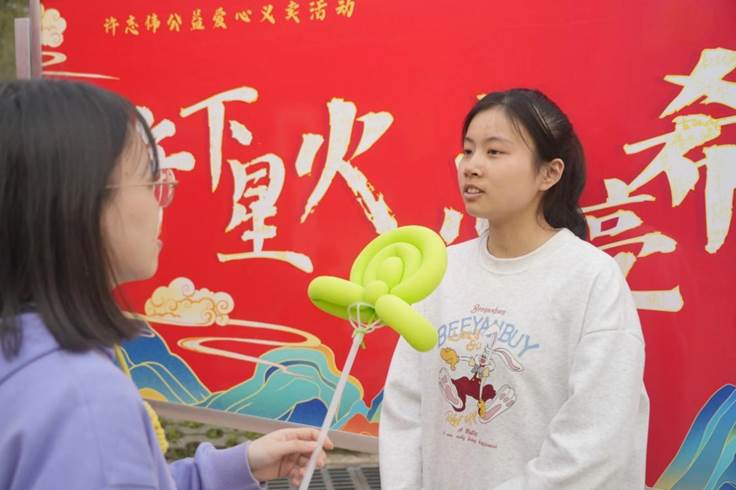“在大一入学教育活动中,我了解了许志伟学长的英勇事迹,一直激励着我积极参与志愿服务活动。今年是许志伟学长牺牲的第二十年,同学们希望把许志伟学长‘坚定信仰、勤奋学习、乐于奉献、舍己为人’的精神传承、弘扬下去,便有了发起义卖、筹建许志伟微光基金的想法。刚开始做手工的时候还是有点困难,在其他同学的耐心帮助下,我也能熟练地将气球变成小动物,将折纸变成蝴蝶。这个活动让我真正明白许志伟精神的内涵,以小爱成大爱。”此次义卖活动的志愿者冯克任分享了他的感受。