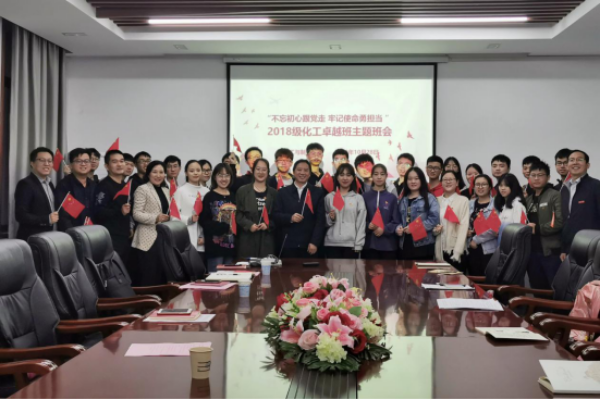 参加2018级化学工程与工艺卓越工程师班“不忘初心跟党走,牢记使命有担当”主题班会,勉励化药学子追求卓越、全面成才。