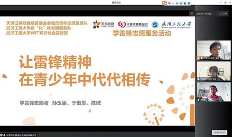 WIT知行实践团成员于傲晨、孙玉涵联合天风证券志愿者陈铖为寒假期间结对的东亭社区孩子们带去了一堂“让雷锋精神在青少年中代代相传”线上课程,课后志愿者们带着孩子们一起在社区做清洁,共同维护美好环境。