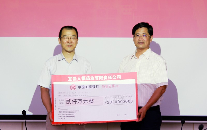 签约仪式上,宜昌人福药业向学校捐赠2000万元。