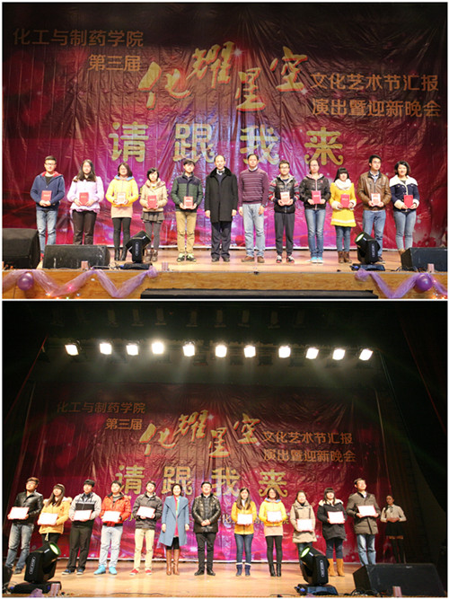 2012级、2013级年度国家(及励志)奖学金获得者和年度“双评”特、甲等奖学金获得者合唱歌曲《红星闪闪之先锋队之歌》和《请跟我来》中圆满落幕。