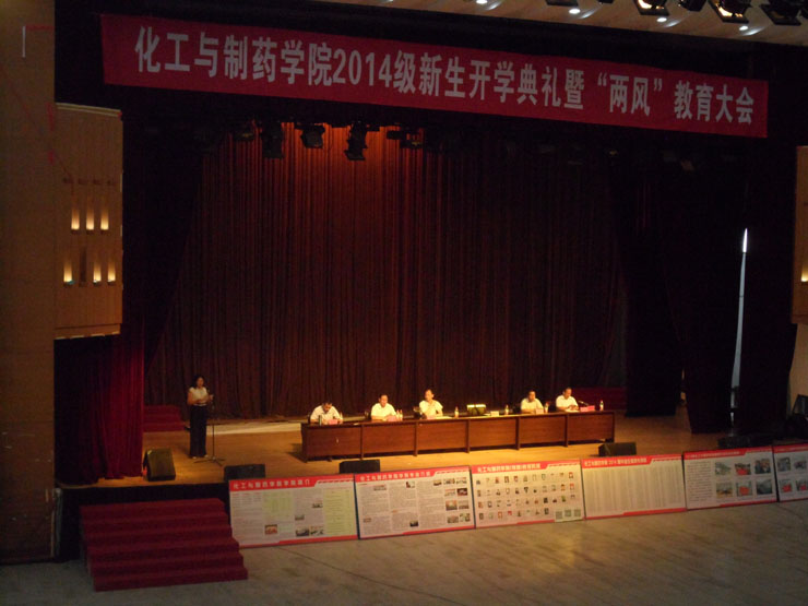 院团学联主席、2012级卓越工程师班王雨晨同学和2014级化工与制药类1班杨港同学分别发言。王雨晨与新生分享了自己在大学的学习、生活、工作的心得体会。杨港在发言中代表新生表态:树立远大的奋斗目标、尊师肯学,严于律己。