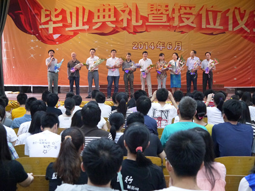 教师代表、2014届毕业班班主任、毕业生家长代表、学生工作办公室成员以及全体毕业生参加了毕业典礼。