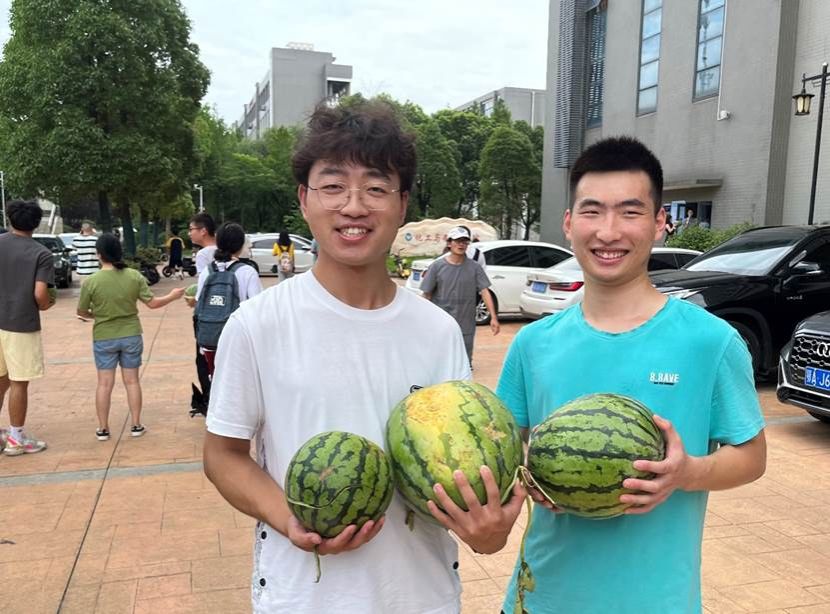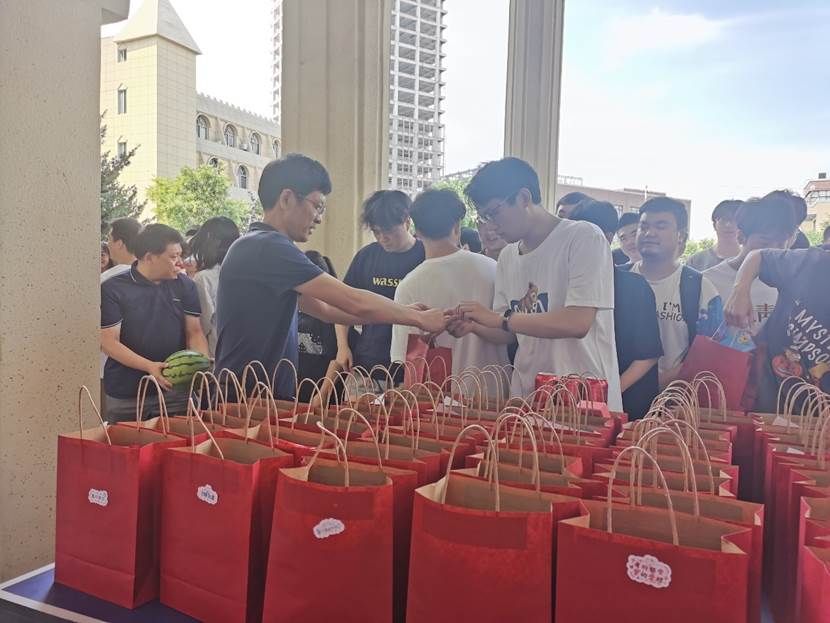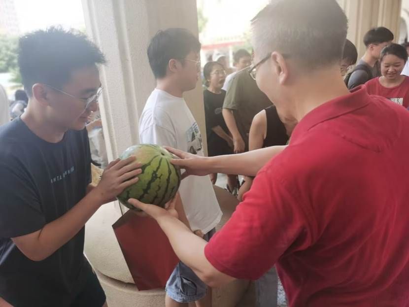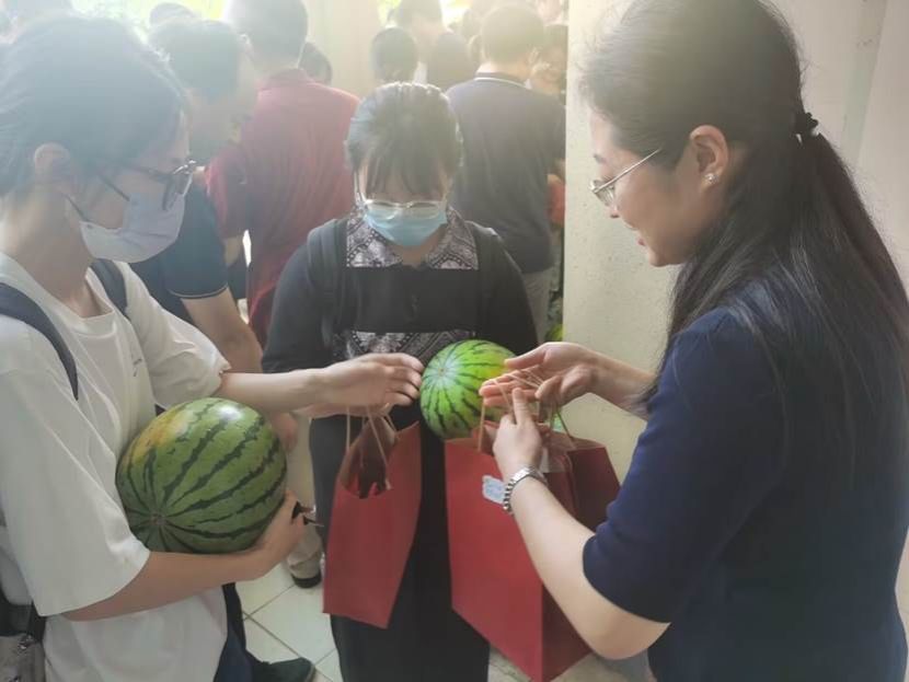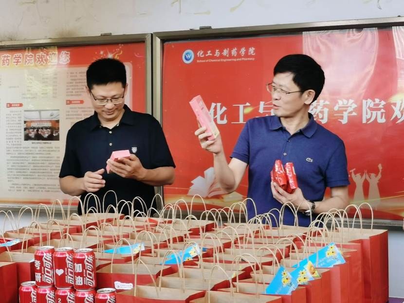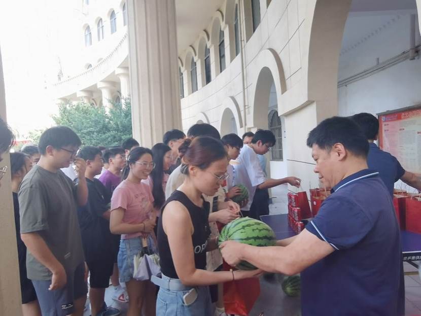 领导老师主动为学生着想,不仅给我们送来了酷暑必备的西瓜与饮料,还精心准备了加油大礼包,让我感受到了老师们的热情和关爱,给我们备战考研注入了全新动力!”2020级化卓班学生卢骏宇和2020级智能化工02班樊羽林真诚地说。
