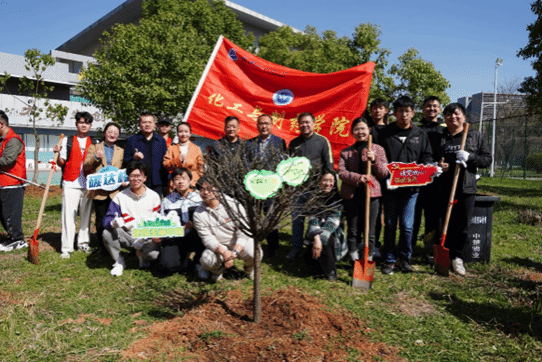党委副书记周丹、全体辅导员以及许志伟志愿服务队代表共植青年林,共创未来情。