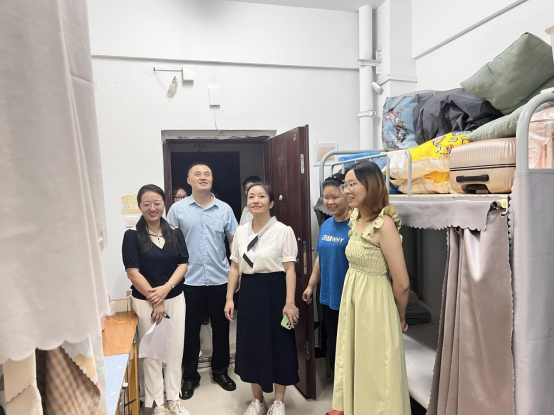 巡查工作小组重点巡查学生宿舍卫生、安全以及走廊堆积杂物等情况。“你们宿舍几个人?”“家是哪里的?”“学习生活有没有什么困难?”“良好的宿舍卫生环境能让同学们感到愉悦和放松,有助于提高学习生活质量,同学们要共同营造文明、温馨的宿舍环境”,党委学生工作部部长、第一组宿舍巡查组组长严敏一行来到学生宿舍,详细询问同学们学习、生活的情况,嘱咐学生要注重宿舍卫生、消防安全、用电安全。