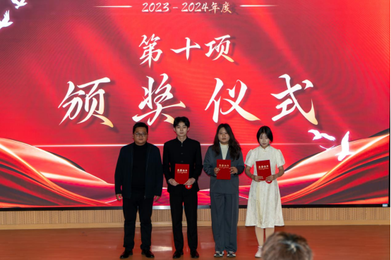 在流芳校区图书馆二楼报告厅举办2023-2024年度红“磷”荣光“双评”表彰大会暨第十九届“许志伟杯”英雄颂朗读者大会。校党委组织部副部长王金领,校党委学工部部长严敏,校党委研究生工作部副部长张琼,校团委副书记陈恩雨,校团委教工兼职副书记崔咏莹,校团委、校语委副主任许劲,香蕉视频